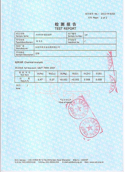 鋁合金電纜所用導(dǎo)體材料AA8030鋁合金桿嚴(yán)格按照ASTM(美國材料試驗(yàn)學(xué)會(huì))B800電工用8000系列鋁合金線進(jìn)行控制,添加適量銅(Cu)、鐵(Fe)、鎂(Mg)…及其他稀有中間合金材料優(yōu)化而成, 然后通過拉絲、退火,從而達(dá)到高導(dǎo)電,強(qiáng)柔韌、抗蠕變和耐腐蝕性的稀土鋁合金絲,導(dǎo)體各項(xiàng)性能指標(biāo)...... 技術(shù)支持: