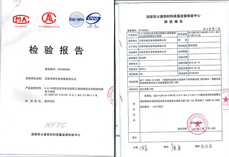 華星合金電纜專注于高科技合金導(dǎo)體、合金電纜的研發(fā)與生產(chǎn),是國內(nèi)領(lǐng)先的鋁合金導(dǎo)體研發(fā)與冶煉企業(yè),為國內(nèi)合金導(dǎo)體材料(AA8030)主要生產(chǎn)及供應(yīng)商,公司生產(chǎn)全系列鋁合金電纜:ZC-TC90(YJHLV)、ZB-ACWU90(YJHLV82)、ZA-AC90(YJHLV8 )、YJHLV22、JKXHLYJ、BXHLV、XHLHL600、NH-YJHLV、WDZN-YJHLV,均通過最權(quán)威的"國家電線電纜質(zhì)量監(jiān)督檢測中心"的檢測合格。