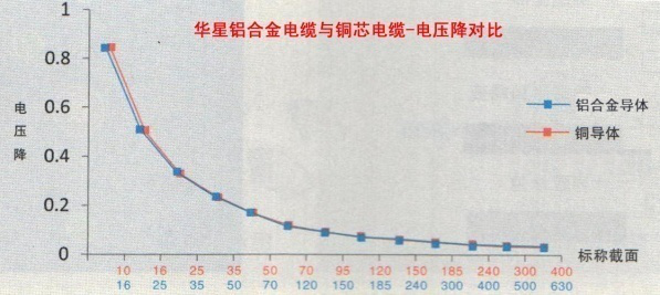 鋁合金電纜和銅芯電纜在同截面同等長度的情況下,其導(dǎo)電率是銅電纜的 61.8%,載流量約為銅電纜的78%,但其質(zhì)量不到同等電氣性能銅纜的一半。根據(jù)電纜截面的規(guī)格分布,將鋁合金電纜的截面增大1.5倍左右,載流量與電壓降等電氣參數(shù)與銅纜相當(dāng),因此在已知銅電纜型號(hào)規(guī)格的前提下,只需按照70及70以下小規(guī)格的銅纜對(duì)應(yīng)使用加大一個(gè)規(guī)格的鋁合金電纜,95及95以上直接對(duì)應(yīng)使用加大兩個(gè)個(gè)規(guī)格的鋁合金電纜即可,其電氣性能、機(jī)械性能及相應(yīng)的應(yīng)用指標(biāo)與原銅芯電纜設(shè)計(jì)標(biāo)準(zhǔn)一致,其實(shí)際使用性能更優(yōu)于原有的銅芯電纜設(shè)計(jì)標(biāo)準(zhǔn)。